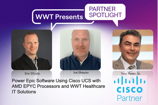 In this WWT Partner Spotlight, Cisco and AMD reveal how their combined expertise is helping healthcare organizations modernize Epic EMR environments, cut costs and prepare for AI adoption. Learn how denser-core servers, validated architectures and real-world testing deliver high performance, lower TCO and risk-resilient infrastructure for the most demanding healthcare workloads. Featuring Cisco Technical Solutions Architect Jon Ebmeier, AMD Healthcare IT Leader Tony Nunes and WWT's Data Center Compute Practice Lead Eric D'Lallo, this webinar will cover the state of the healthcare industry, overcoming common migration challenges, and the benefits of AMD's denser cores in reducing infrastructure costs and improving performance.